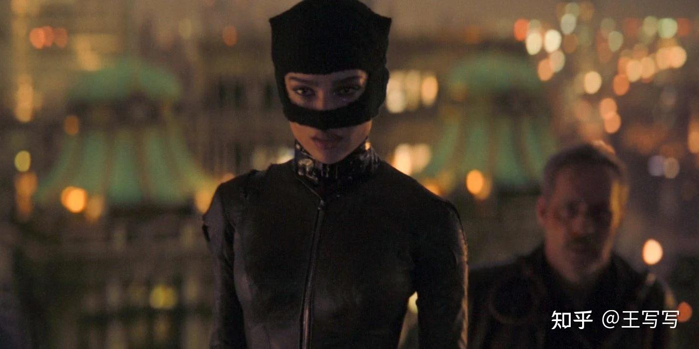 《新蝙蝠侠》中的企鹅人与猫女,同样走的写实路线,但也是受制于戏份的原因,描写得较为扁平。相比以前的蝙蝠侠影视作品来说,除了去卡通化,没有什么实质性的飞跃性发展。企鹅人这一角色在本片中的主要魅力,基本上是靠造型上的奇观性剥削来实现的,尤其当我们知道他是科林·法瑞尔演的之后,就更被心甘情愿地剥削了。除此之外,企鹅人的戏剧作用很弱,基本就是一个遮遮掩掩的夜总会老板,被迫提供一些线索给蝙蝠侠,还贡献了一场追车戏。当然,他最后靠法尔科内的死上位了,坐享渔翁之利,今后的剧作地位也许会更吃重。但本片里的企鹅人与常规黑帮老板的形象差异不大,除了造型以外很难有其他令人回味的地方。
