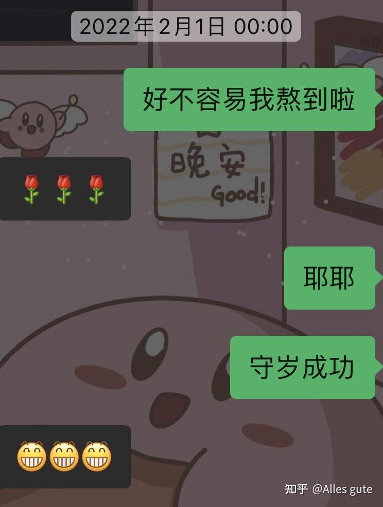 怎么说呢,突然就明白了为什么别人要跟喜欢的人一起守夜,就是这种感觉吧,至少在那一天,你们看的电视节目一定是一样的,那个人这一年的第一秒钟是隔着屏幕和你一起度过的,第一条消息是发给你的,哪怕这些对那个人来说没意义,对你来说也未必有意义,可没意义也开心