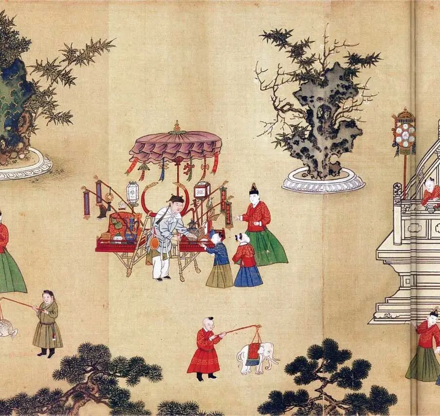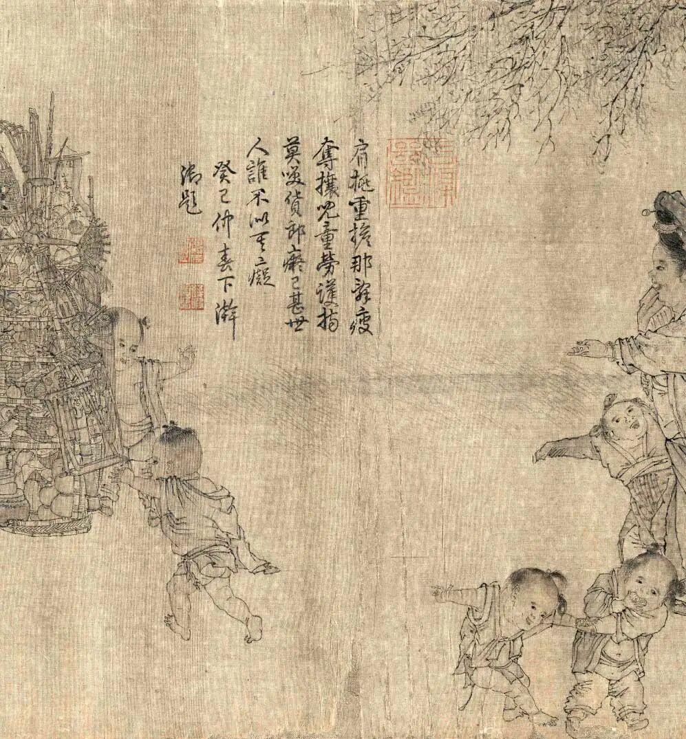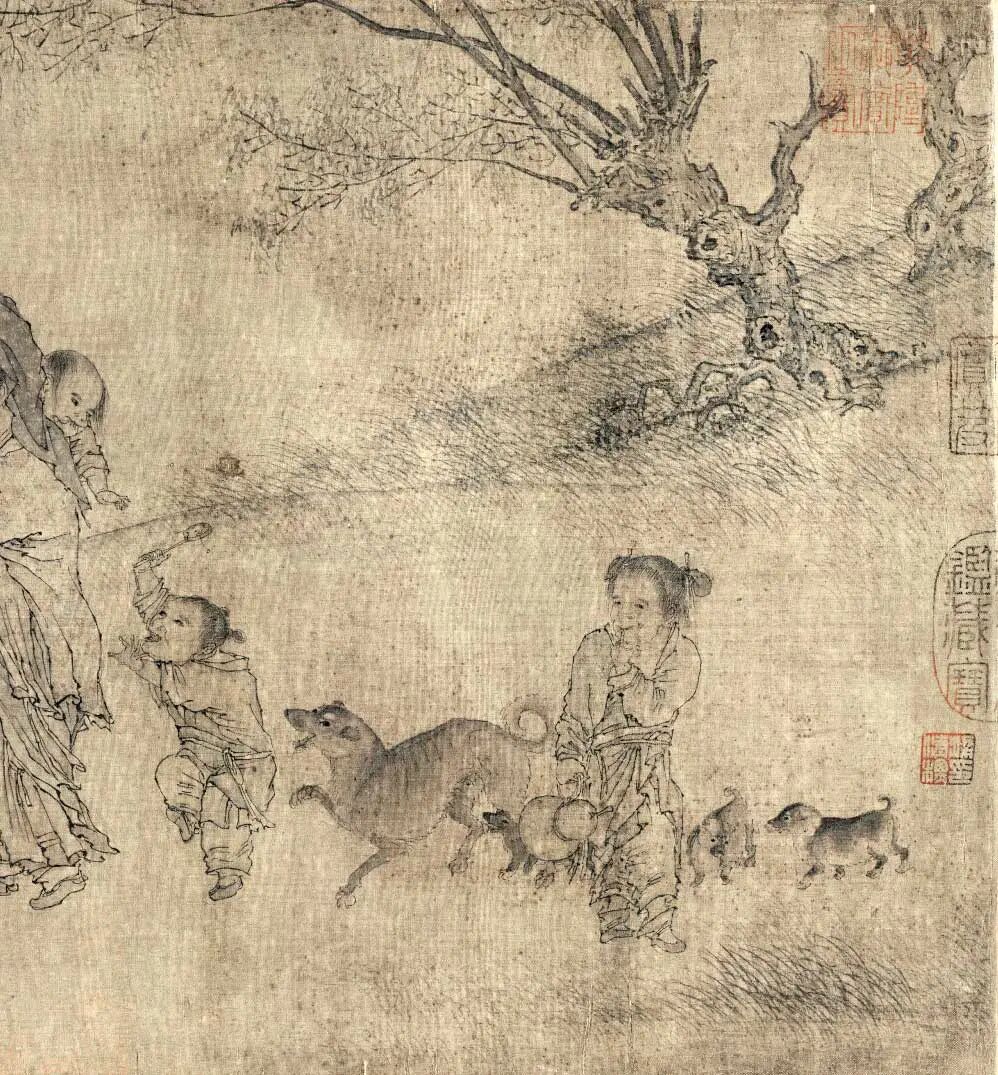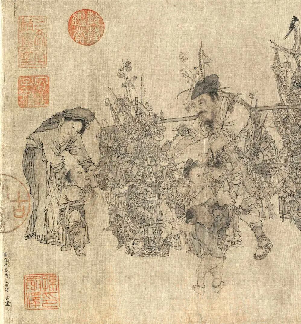 毫无疑问,古代医疗条件的局限性是导致幼年皇子早夭的重要因素。而在医疗条件不尽如人意的情况下,职业乳母便被视为守护皇子最重要的依靠。末代皇帝溥仪晚年曾回忆,皇宫中任何女人死亡所带给他的悲痛,都远不及将他抚养长大的乳母被赶出皇宫时令他悲痛欲绝。可见,陪伴皇帝长大的乳母在皇帝心目中有着怎样重要的位置。这也恰恰成为能够将宋代皇帝顺利抚养长大的乳母,几乎无一例外的均获得无上尊荣的重要原因。而供职于画院的院画家李嵩,其笔下多次出现的“妇人乳婴”恰恰应是乳母形象。而妇人身旁孩童婴戏场景中多子祈福,保育幼婴的图像寓意也就跃然于笔端。