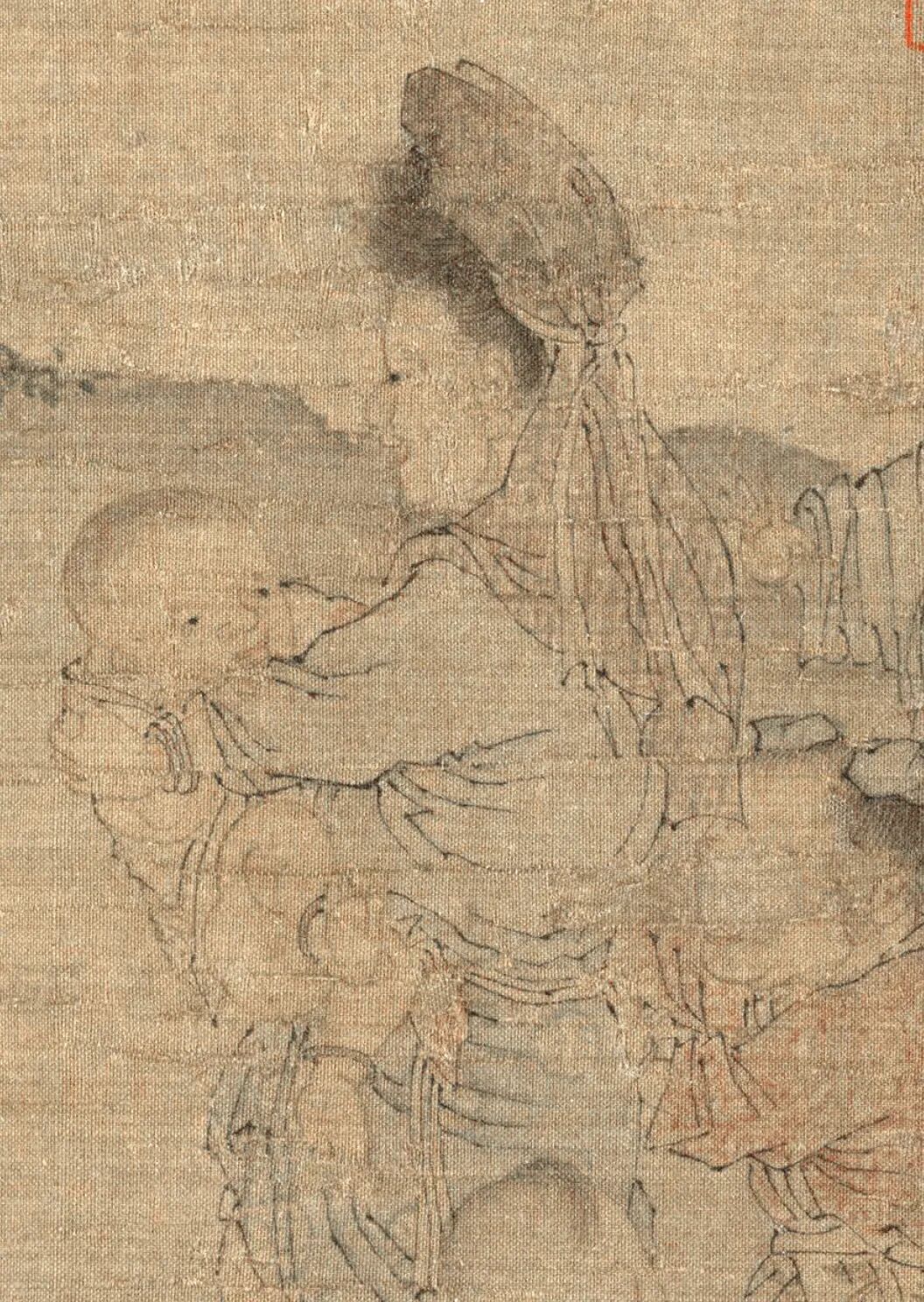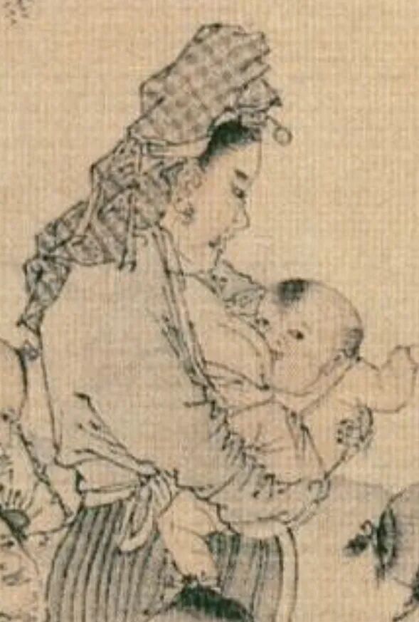 图6 李嵩《市担婴戏图》中的妇人乳婴
