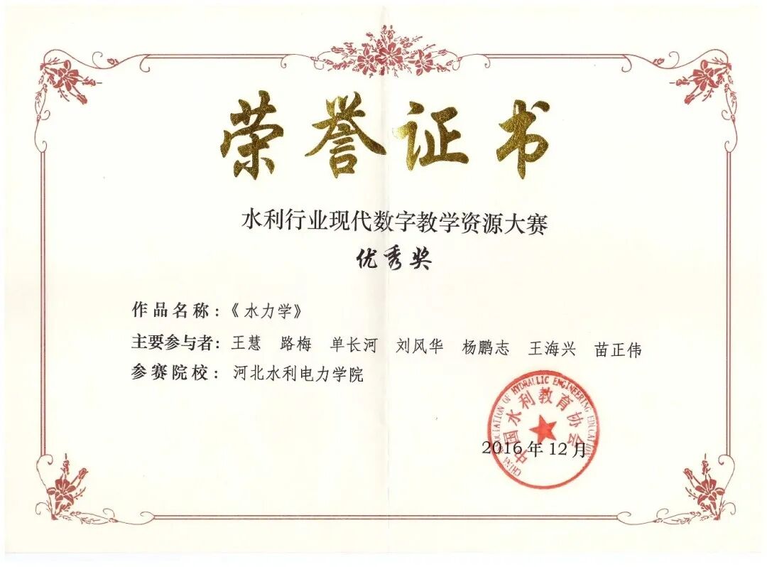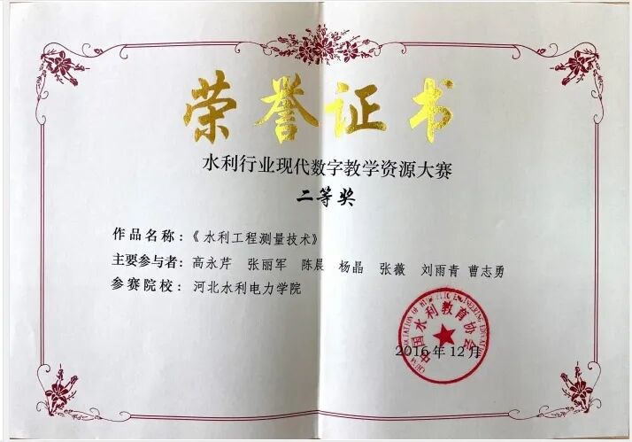 5、2011年12月,全国水利职教教学新星 中国水利教育协会;