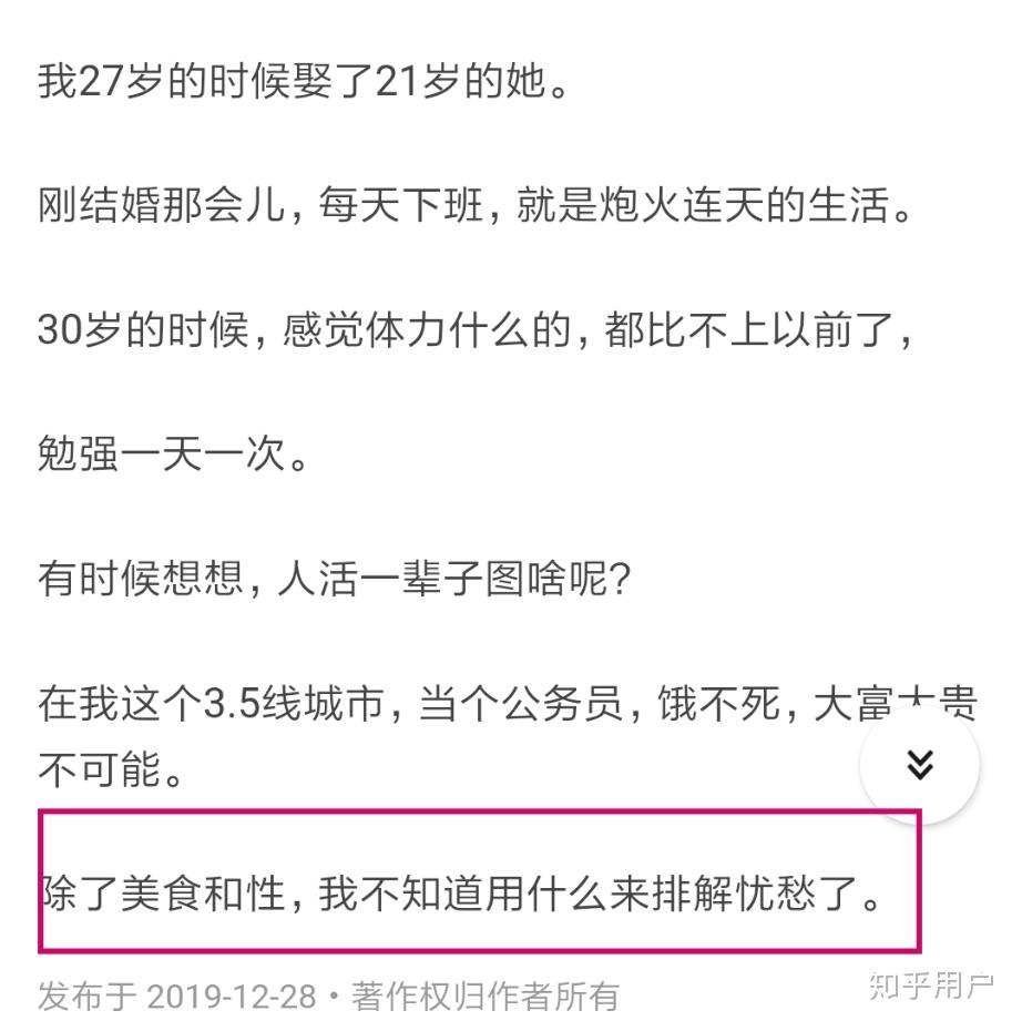 成年人的生活,真的需要夫妻生活来发泄压力,不然真的会崩溃,要养家糊口,上有老下有小,工作加班挣钱赔笑脸给客户甚至无论怎么被领导骂都不敢辞职,压力很大的,连发泄压力最有效直接的方式都被堵住了,那生活会很压抑的。