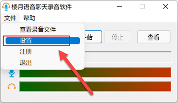 1,首先在网上下载楼月语音聊天录音软件,运行软件后,会看到一个小巧的软件界面,接着点击“文件”,“设置”菜单。