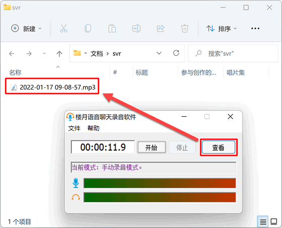4,要查看刚才录制下来的音频文件的话,点击“查看”按钮就可以了,可以看到一个以录音日期及时间命名的MP3音频文件,该文件即为刚才录制下来的内容。