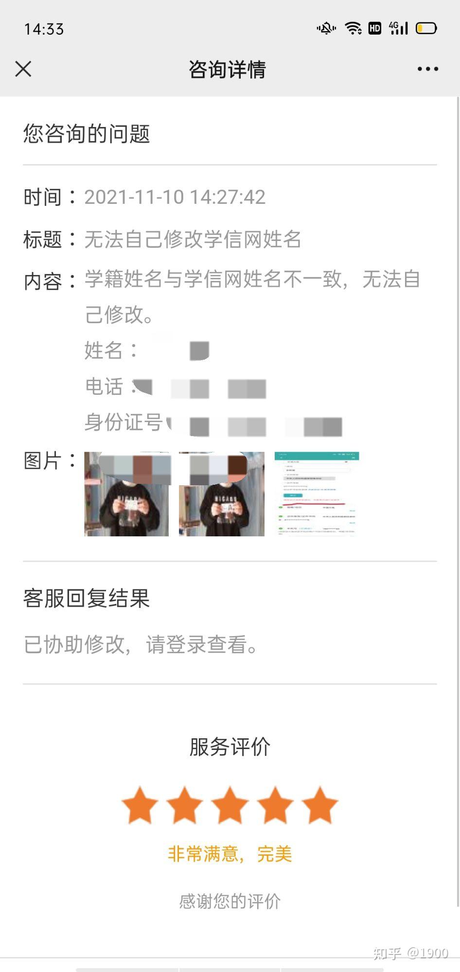 学信网:这个的姓名是自己可以修改的。如果自己修改不了,关注学信网公众号,咨询中心。信息如下:回复很快,几分钟就解决了。