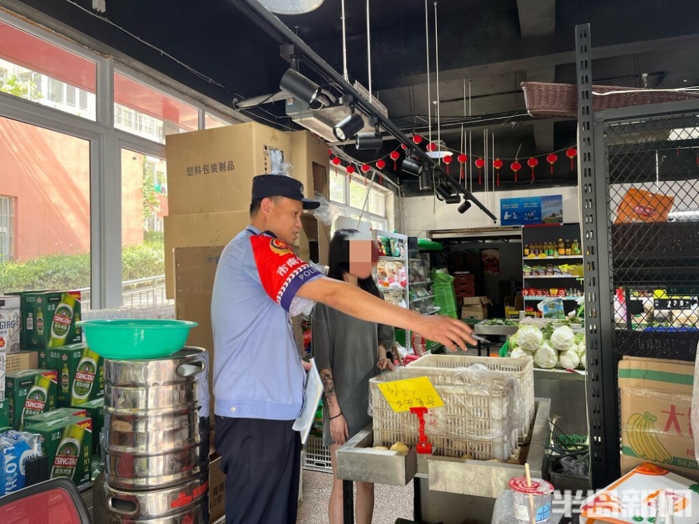 入户时,除了反诈宣传,消防安全也成了八大湖派出所的宣传重点,从住户到商铺,每一处都有民警陈飞虎巡逻的痕迹。7月6日,记者跟随陈飞虎来到高邮湖路的某家饭馆,前几日在日常巡逻检查中发现,该饭馆的厨房未安装相关消防设备,存在消防隐患,陈飞虎当即下达了整改通知。