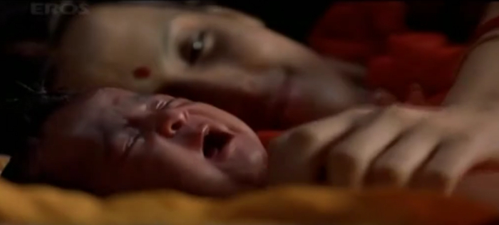 镜头一转,女婴的父亲举着她的身体,一边发誓明年一定要生个男孩,一边亲手把女儿溺死。