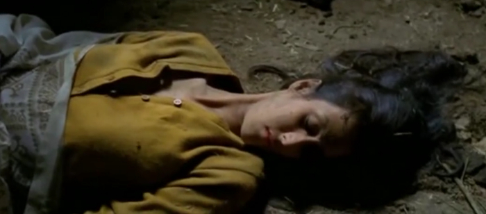 拉古目睹了卡尔姬所有的遭遇,答应带她逃离,可没走出村子多久,他们就被发现了,拉古被射杀。
