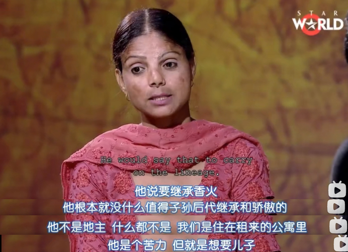 在阿米尔·汗制作的《真相访谈》中,一位女性在8年的时间里,被婆婆和丈夫逼着流产6次,只因她每次怀的都是女儿。