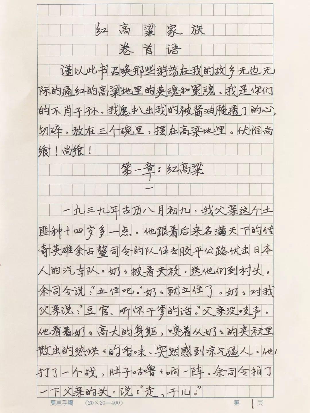 直到现在,他仍旧每年回高密住一段时间。他的小说基本都是手写,他写作速度奇快,一天能写一万字,稿纸却相当整齐、少修改。