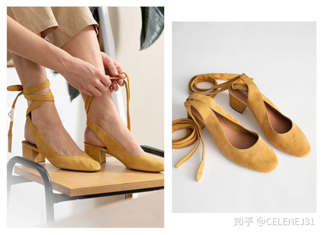 Rouje 185欧如果你觉得黑色在夏天显得太庄重的话,不妨试试&Other Stories这款姜黄色绑带的粗跟,绑带的设计很好地凸显了脚踝的性感,撩人不动声色: