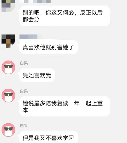 他的方法,就在聊天记录里,同学们看一下。分手和复读都像拉着女生一起,让人不禁脊背生凉,这就是个高中刚毕业的学生,怎么能这么坏?