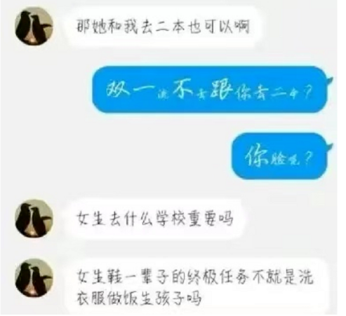 男生随即发表更雷言论