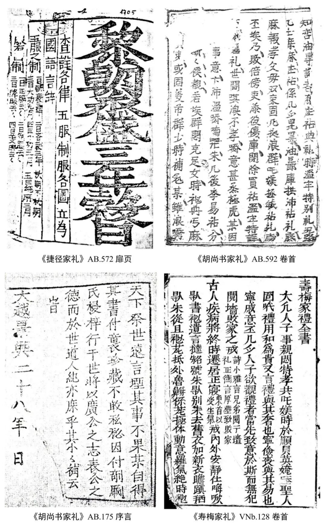《家礼》及其具体礼仪直到17世纪至19世纪之间才被越南的知识阶层反复传颂,并普及民间社会,由此产生了大量的汉喃礼俗写本。比如《家礼略编》,分《古训》《祭训》二篇,前篇记录古代圣贤有关祠堂、斋戒、祭礼等的论述,后篇记载若干祭礼仪式以及元旦、端阳、中元等节的祭文;《丧礼备记》在《寿梅家礼》的基础上改编了奠祭、服丧、五服图与挽祭联范文等。