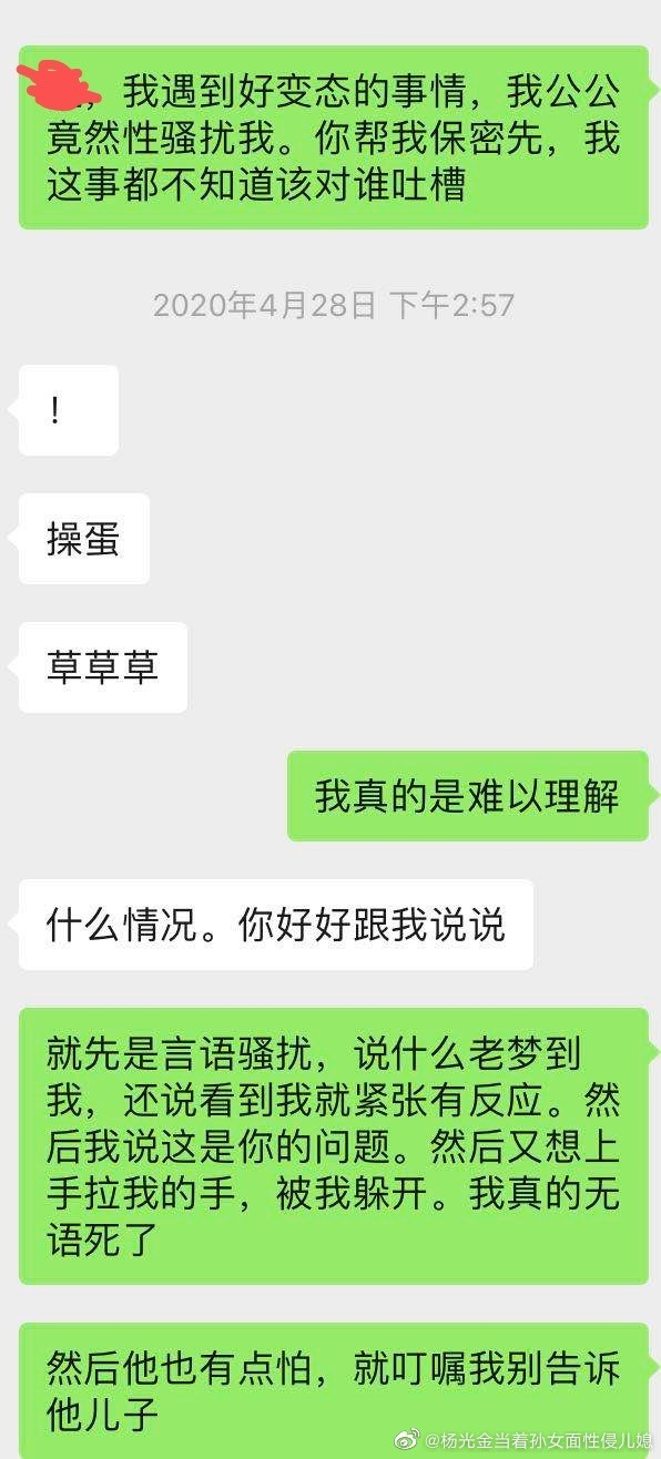 图源:腾讯视频据《澎湃新闻》报道,就在今年的四五月初,这个父亲就开始动儿媳妇的心思,据儿媳和闺蜜的聊天对话显示,父亲当时摸了儿媳的手。儿媳当时没有把这件事及时告诉老公,是怕影响他们父子关系,只是跟闺蜜之间吐了一下槽。