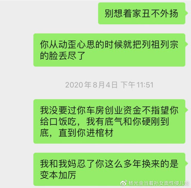 图源:澎湃新闻然而儿媳的忍让反而助长了公公的胆量。7月12号,杨某某提前一天支开了妻子,在列治文市的住处,当着孩子的面性侵了他的儿媳妇。而涉事男主还有一个哥哥,今年9月6日要在上海结婚。哥哥也不允许弟弟去报案,因为担心父亲性侵被抓,势必会成为轰动一时的丑闻,影响到他的婚礼。随后,他的父亲和母亲,在事情暴露后迅速赶回国内,并在9月6日参加了大儿子的婚礼。