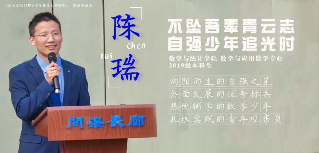 孜孜以求,做实干的“泛函少年”。从泥泞中成长,让他始终对未来满怀希冀,他努力成为光,坚定地散发光。十余次的经验分享、两本书作的撰写、支部建设的推进,他用实践在中南沃土上书写属于他的自强故事!