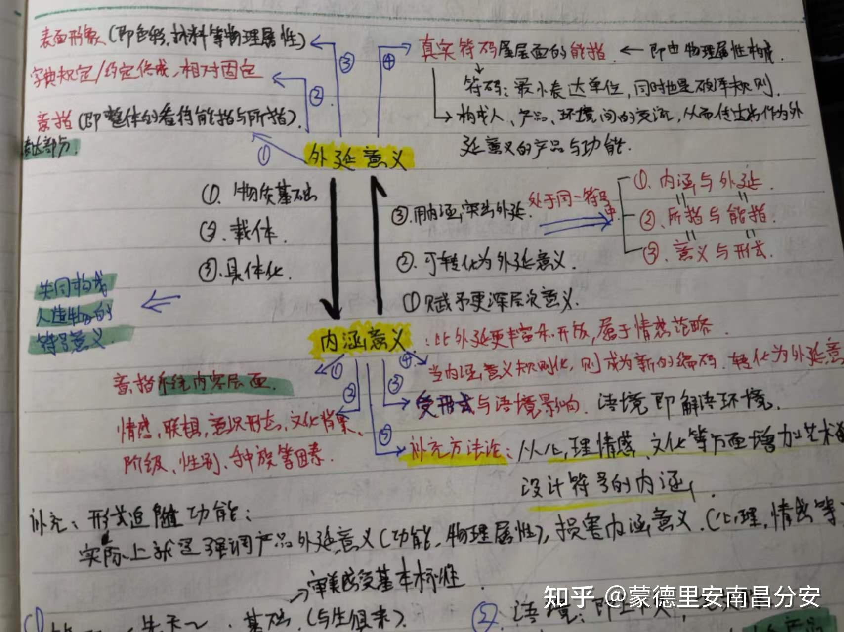 第四点说说如何答题。在早年间,南昌大学理论还有名词解释与填空题。而近几年,所有设计类相关专业都换成了简答和论述。一般简答题需要500字左右,论述题1000字。(所以大家写字速度一定要快一些,我就因为写字速度慢导致最后一题没写完而只有135,血的教训!)其实简答和论述大大加重了老师的阅卷压力,由此可见命题人不是想选拔背书机器,而是想通过理论答题来看你将来的学术研究潜力,恰恰论述题和简答题是很能体现学生的综合能力的。所以想拿高分,首先需要真正提高自己的理论素养。既然老师想通过题目考察学生将来的学术研究的能力,那么我们是不是可以直接以写论文的态度去写论述题呢?当然这里的“论文”不同于我们的本科毕业论文与硕士毕业论文。而是相对于简化了的——似“论文”而“非论文”。首先题目问什么答什么,开篇先点题。紧随其后可以用一个案例来支撑你的论点,然后引入相关的知识内容(一定要学会去发散与扩充)。即引入下一个论点,可以是递进式,也可以是平行式,重要的是答题逻辑结构一定要清晰。必要的地方甚至可以引入手绘,以图文并茂的方式来给答案增色,给考试提分。