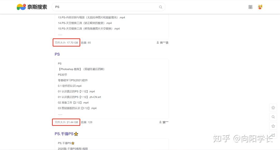 这里,派哥以搜索【PS】给大家举个例子,搜索后呈现出很多相关的网盘资源,不管是PS的教程还是软件,通通都有,而且看资源动达数G的大小就知道,整个资源真的非常有用而且全面!