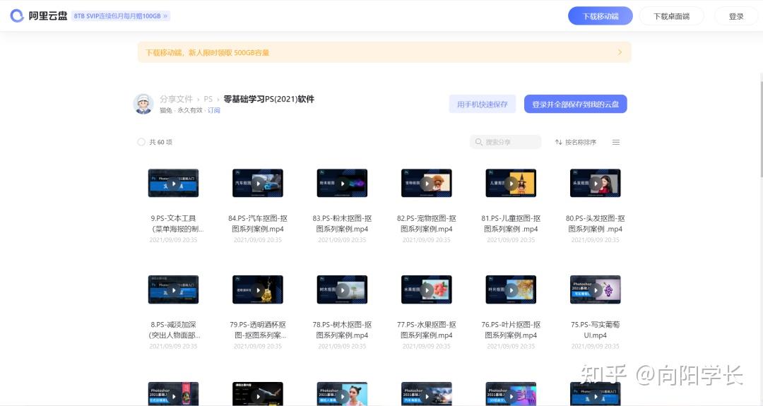 点击一个你看中的资源,会直接跳转到阿里网盘的界面,你可以将资源保存下载到你的网盘,也可以保存后直接在线使用资源,资源利用非常方便。
