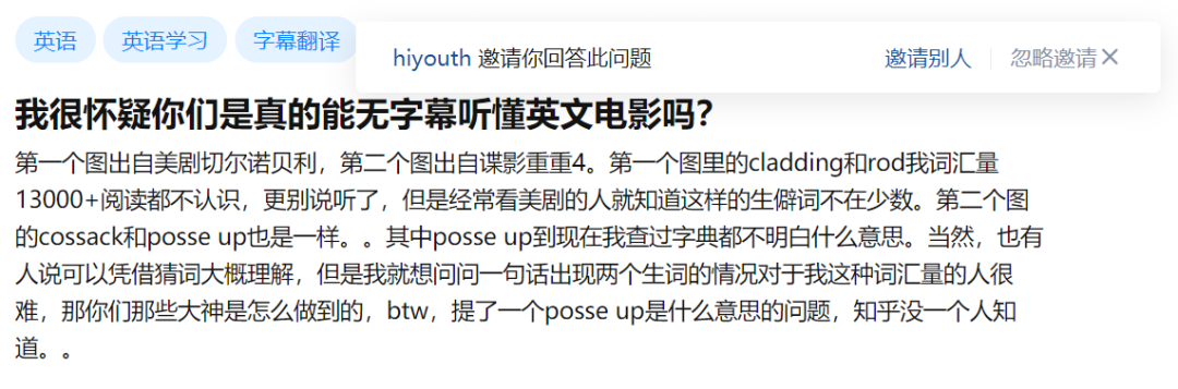 在问题描述中提问者讲到了英文电影中出现的俚语以及生僻表达问题,这一点很多同学相信都有所体会。