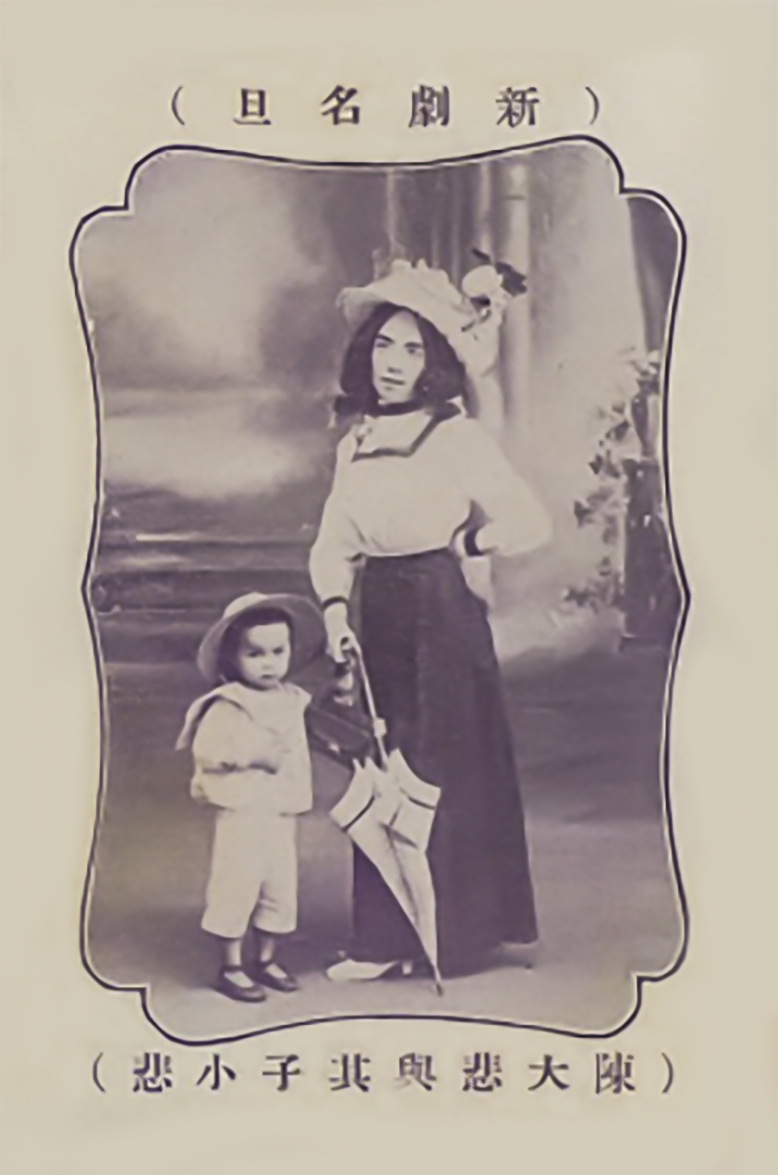 文明戏依附新剧,新剧家却并不承认文明戏。新剧毕竟已经积蓄了十多年的经验和优秀人才,拥有较为成熟的演剧机制和创作方式。文明戏艺人大多是“散兵游勇”,以一技之长谋生于游乐场,自负的新剧家自是不愿与之为伍。1922年,鸿年在《二十年来之新剧变迁史》中饱含深情地回忆起新剧的点点滴滴,高频度使用“新剧”一词,自始至终未提到“文明戏”。陈大悲则在《爱美的戏剧》中使用了“半新半旧戏”“假新剧”“非驴非马的四不像的旧戏”等多种名字,痛批文明戏。欧阳予倩在1949年后亦有《谈文明戏》一文,把春柳社之后的新剧全部归入“文明戏”,但同时又说:“初期话剧所有的剧团都只是说演的是‘新剧’,没有谁说文明新戏。”因此,与其把“新剧”称为“文明戏”,不如把“文明戏”看作是“新剧”之外的另一新事物。新剧名旦陈大悲与其子小悲,《繁华杂志》1915年第5期,图片引自“全国报刊索引”数据库