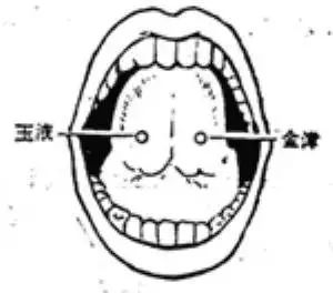 意守「金津」、「玉液」两穴。