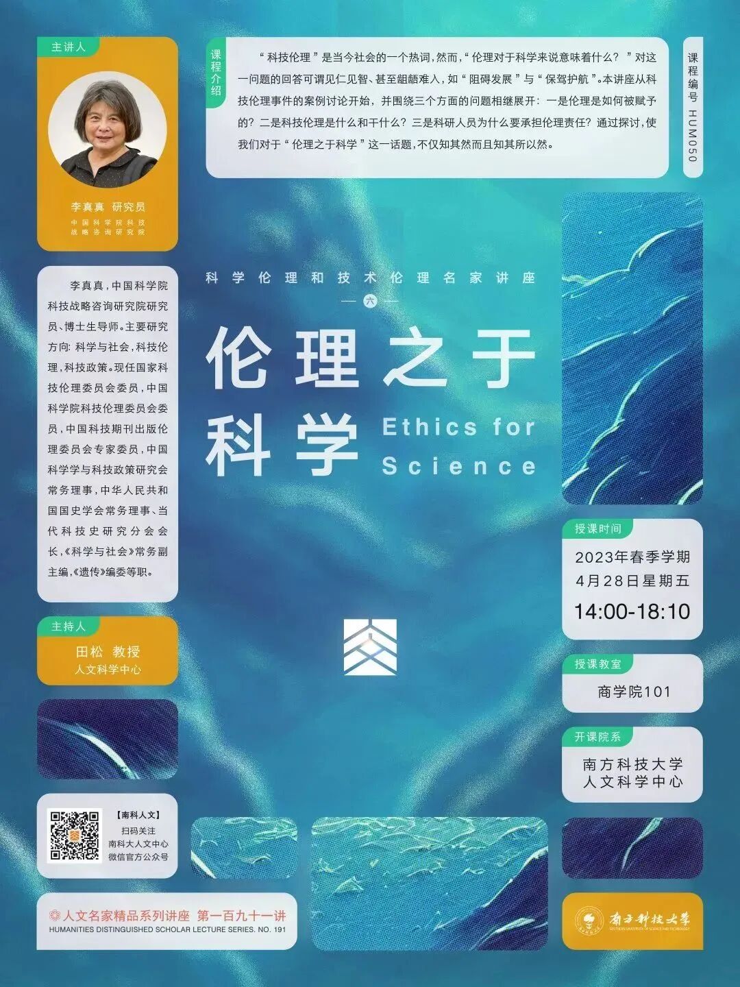 李真真,中国科学院科技战略咨询研究院研究员、博士生导师。主要研究方向:科学与社会,科技伦理,科技政策。现任国家科技伦理委员会委员,中国科学院科技伦理委员会委员,中国科技期刊出版伦理委员会专家委员,中国科学学与科技政策研究会常务理事,中华人民共和国国史学会常务理事、当代科技史研究分会会长,《科学与社会》常务副主编,《遗传》编委等职。