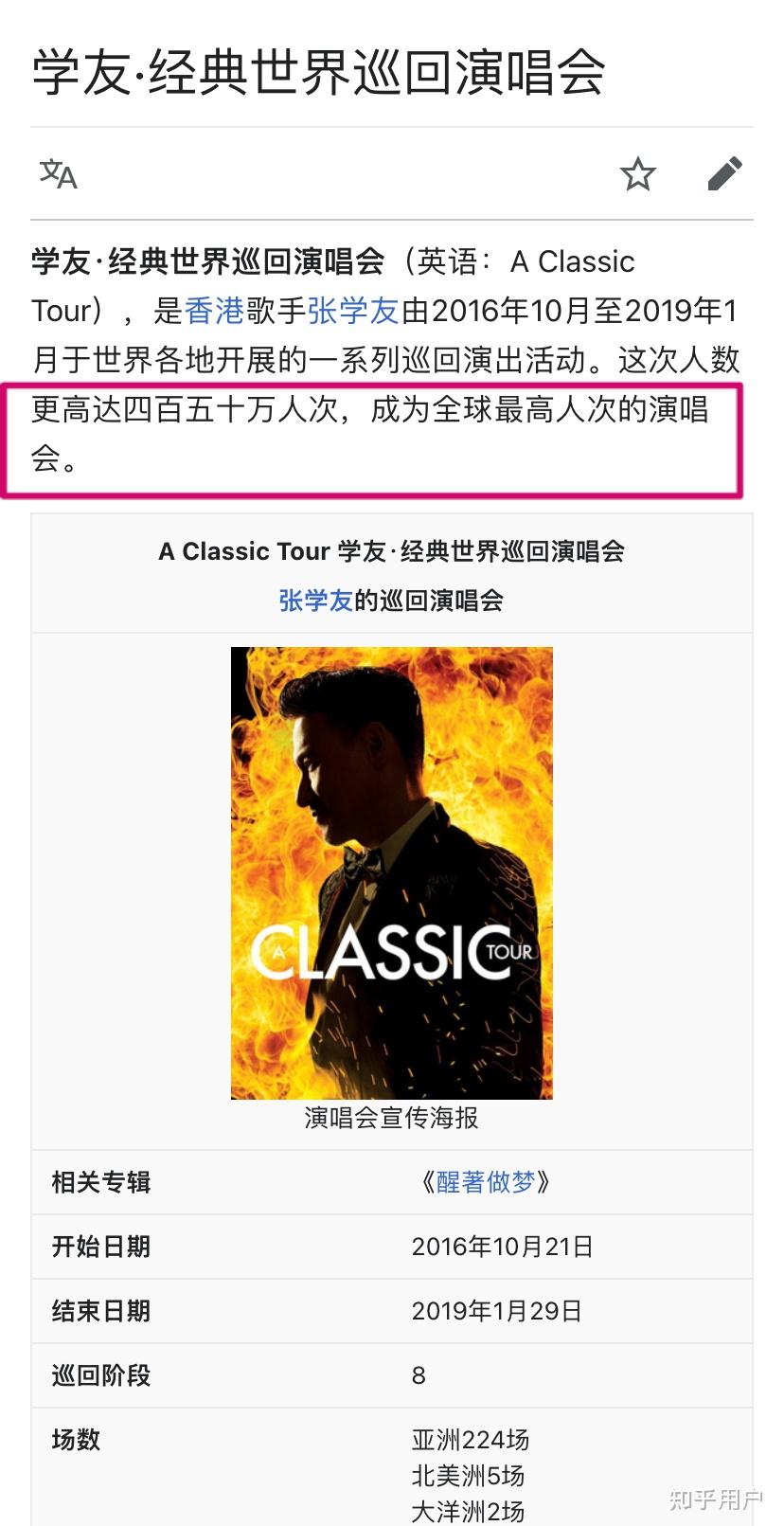 第一名的那个人,不搞演唱会的话他平时就没啥存在感,搞演唱会他也不用大肆宣传,一宣布举办演唱会就能场场爆满,周星驰20多年前就在电影里感叹他的演唱会票的难买程度,拿过两次演唱会上的吉尼斯世界纪录,2007年世界巡回唱105场拿了吉尼斯纪录,2012年结束第二次世界巡回147场,自己破自己的吉尼斯记录,他上次结束的世界巡回演唱会在2019年,总共巡回了三年233场,观众人次450万,已经是现在全世界人次观看最高的巡回演唱会,欧美日本乐坛也是无人能触碰这个纪录。如果去递交申请的话也能直截了当第三次拿吉尼斯纪录,不过他懒得去申请了。