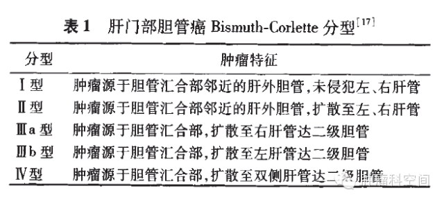 许多分期系统被推荐用于HCC的分期,但到目前为止还没有一个分期系统被广泛接受。目前临床较常用于HCC的有四个不同的分期/分型包括:1.根据胆管受侵情况的大体的形态分期Bismuth-Corlette分型(ⅡA类推荐),经典实用,但对患者的划分只是基于胆道受侵的水平和范围,而未考虑血管侵犯、淋巴和远处转移等其它信息,见表1。