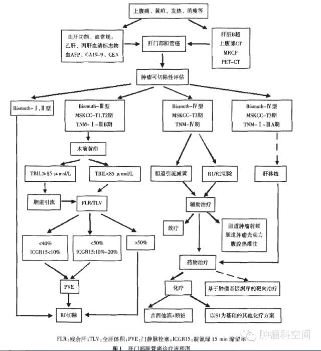 (1)化疗(ⅡA类推荐)目前,胆道肿瘤化疗方案仅有一个高级别的循证医学证据,建议采用以下两个方案:·吉西他滨+顺铂方案(PhaseⅢtrial sup.porting,category 1),·s1为基础的联合化疗方案(PhaseⅡtrialsupporting)例。(2)癌基因靶向治疗(ⅡB推荐)·截至2014年,已结束的多个胆道肿瘤癌基因靶向治疗临床药物试验,均未取得突破。·目前仍在进行的临床前的基础研究中,针对某些癌基因的靶向治疗显示出对胆管癌具有疗效口,随着精准医疗概念提出及研究的深入,采用癌基因靶向治疗的肿瘤个体化治疗将会使胆管癌病患获益。(3)放疗(ⅡB推荐)·建议三维调强放疗。(4)介入治疗·胆道内支架、解除梗阻性黄疸的治疗,推荐双侧胆道置人覆膜金属支架㈤1(ⅡA类推荐)。·胆道腔内肿瘤射频治疗H列(ⅡB推荐)。·胆道腔内肿瘤光动力治疗,可以使胆管腔内肿瘤细胞坏死、脱落H2431(ⅡB推荐)。·胆道腔内肿瘤近距离放疗Ⅲo(ⅡB推荐)。·腹腔转移灶热灌注化疗对控制肿瘤广泛转移及恶性腹水具有效果H纠(ⅡB推荐)。HCC诊断流程见图1。