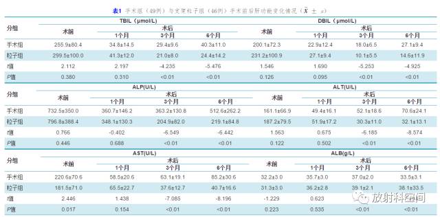 一、两组患者手术前后肝功能变化趋势及并发症情况