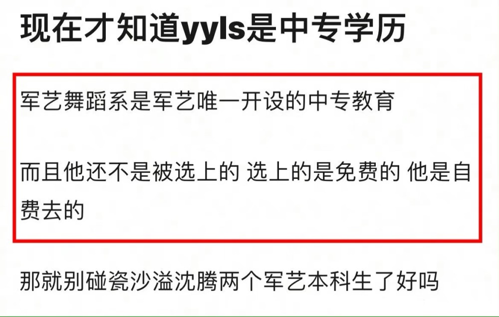 与此同时,杨洋被曝并非科班毕业,学历也只有中专,和军艺校草沈腾、沙溢完全不在一个层次上。