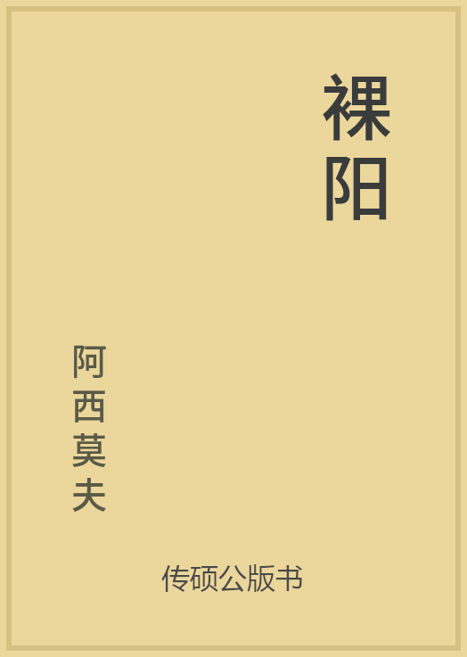 《裸阳》(The Naked Sun),是美国科幻作家艾萨克·阿西莫夫出版于1957年1月的科幻小说,第二部以以利亚·贝莱(Elijah Baley)为主角的科幻推理小说,也是阿西莫夫“机器人系列”的第二部作品。在遥远的索拉利星球上,首次发生了神秘谋杀案。索拉利文明根植于大量运用机器人为奴隶,人与人隔绝,不相往来,任何索拉利人,终其一生都无法忍受与配偶以外的人接触。这次案件中的被害者是家中男主人,而所有证据都说明他的妻子不可能是凶手,那么,会是机器人吗?然而根据机器人学三大法则、机器人是不能够杀人的。地球便衣刑警以利亚·贝莱奉命前往同机器人机·丹尼尔·奥利瓦合作侦破此案。他也是第一个被允许进入外围世界的地球人,藕此他可以探听许多地球人迫切想知道的外世界真相……