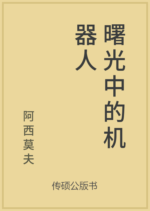 《曙光中的机器人》(The Robots of Dawn),是美国作家艾萨克·阿西莫夫(Isaac Asimov)出版于1983年的科幻小说,第三部以以利亚·贝莱(Elijah Baley)为主角的科幻推理小说,地球上的人类社会发展到了若干年后的未来,地球早已人满为患,资源被破坏殆尽,人们不得不躲进钢铁筑就的“蜂穴”中。与此同时,一些勇于探索的地球人前往银河中的其他星球开拓定居,建立了五十个地球以外的新世界。地球上的C七级便衣刑警以利亚·贝莱曾经有机会两次去外世界,从而对地球人向外星球殖民充满了渴望,希望有一天能和儿子一起借助太空族先进的宇宙飞船踏上新的星球,开始银河新生活。奥罗拉世界是外围世界较为发达的星球之一,机器人的制造技术已经能够制造出有心智的人形机器人。因为一个偶然的原因,奥罗拉世界的汉·法斯陀夫博士仅有的两个人形机器人之一詹德被“杀”(心智摧毁),其后果直接威胁到博士的政治前途和地球世界向外太空的殖民……与博士有交往的以利亚受邀去奥罗拉查清真相。于是,一场地球人与外世界人、人与先进的机器人之间的故事由此展开……大师以他广博的学识,为读者描绘出了未来在广袤的银河世界中人和先进的机器人共同生活的状态,描绘出发生在银河新世界的权利之争、科技之争及人类与日益先进的机器人之间的爱恨情仇……