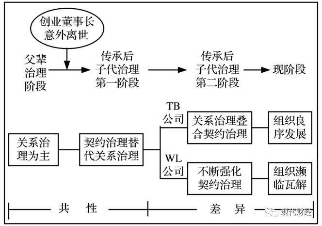 为尝试回答理论与实践困境诱发的以上问题,本研究对两家突发性代际传承的家族企业进行了跨案例的研究分析。基于企业契约理论与社会嵌入理论视角,就两位子代董事长在不同阶段中治理行为的共性与差异,挖掘出契约治理与关系治理的机制构成。而后,聚焦两家企业演化发展过程涌现出的丰富故事情境,归纳出目标准则与系统秩序两个理论维度,由此阐释了契约治理与关系治理的驱动逻辑。在对案例素材进一步剖析后,本研究拓展构建出行为动机、制度环境与家族理念的整合性框架,深刻揭示出两种治理模式选择的适配环境。