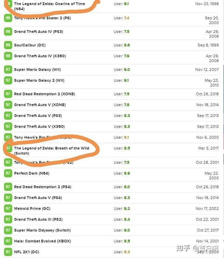 主机作品里连最低的《天空之剑》也有93分这个神作的分数。举个例子,神作P5也是93,新战神94,巫师3是92分(虽然现在MC均分有时候也不那么靠谱)。