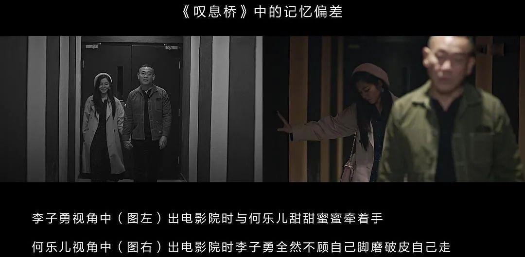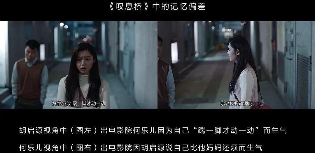 豆瓣网友林倏然整理的《叹息桥》中的部分记忆偏差还有一些细节是道具或者置景的不同。比如很多网友发现,在胡启源的视角里,他的女友何乐儿家里的抱枕跟妈妈家的抱枕是一样的,但实际上女友家的抱枕是另外一个花色。这个细节说明在他心里,女友给他的感受和妈妈给他的感觉是一样的。