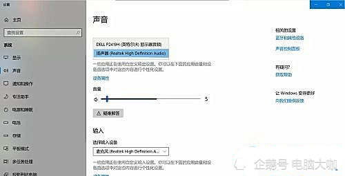 3、选择输出设备,默认是“DELL P2419H(英特尔(R)显示器音频)”;