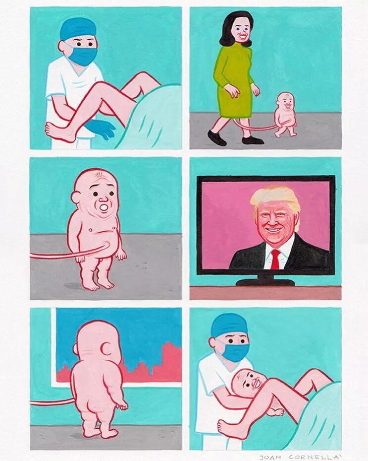 你可能没有听说过胡安·科尔内利亚(Joan Cornellà)这个名字,但你肯定对这样的笑容似曾相识:无辜的塑胶面孔、冰淇淋的配色、做着令人不寒而栗的事、似幽默似病态、可爱亦邪恶......这些如病毒式攻克着网络的诡异黑色幽默插画,就是这位来自巴塞罗那的插画家所创作的。