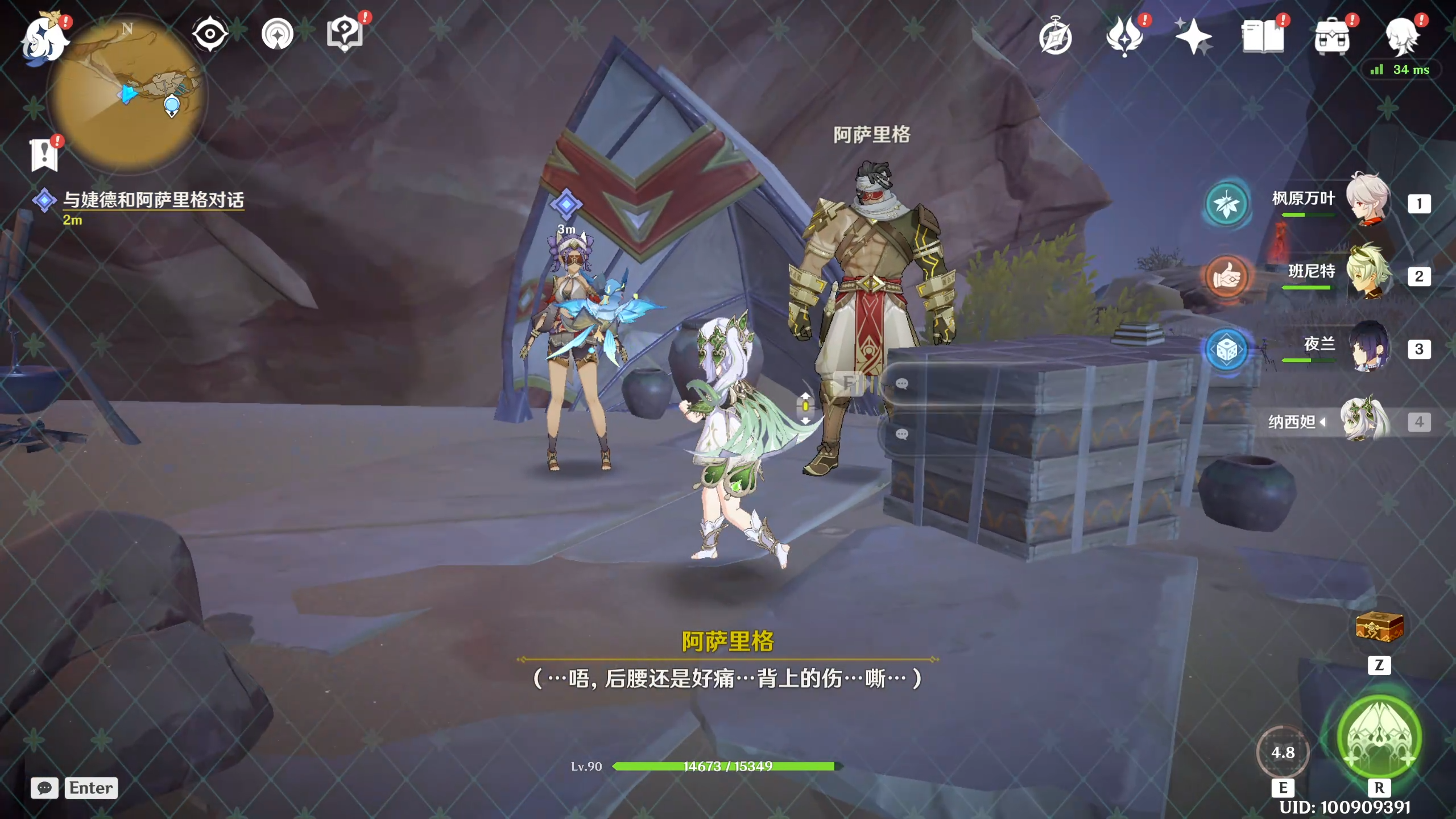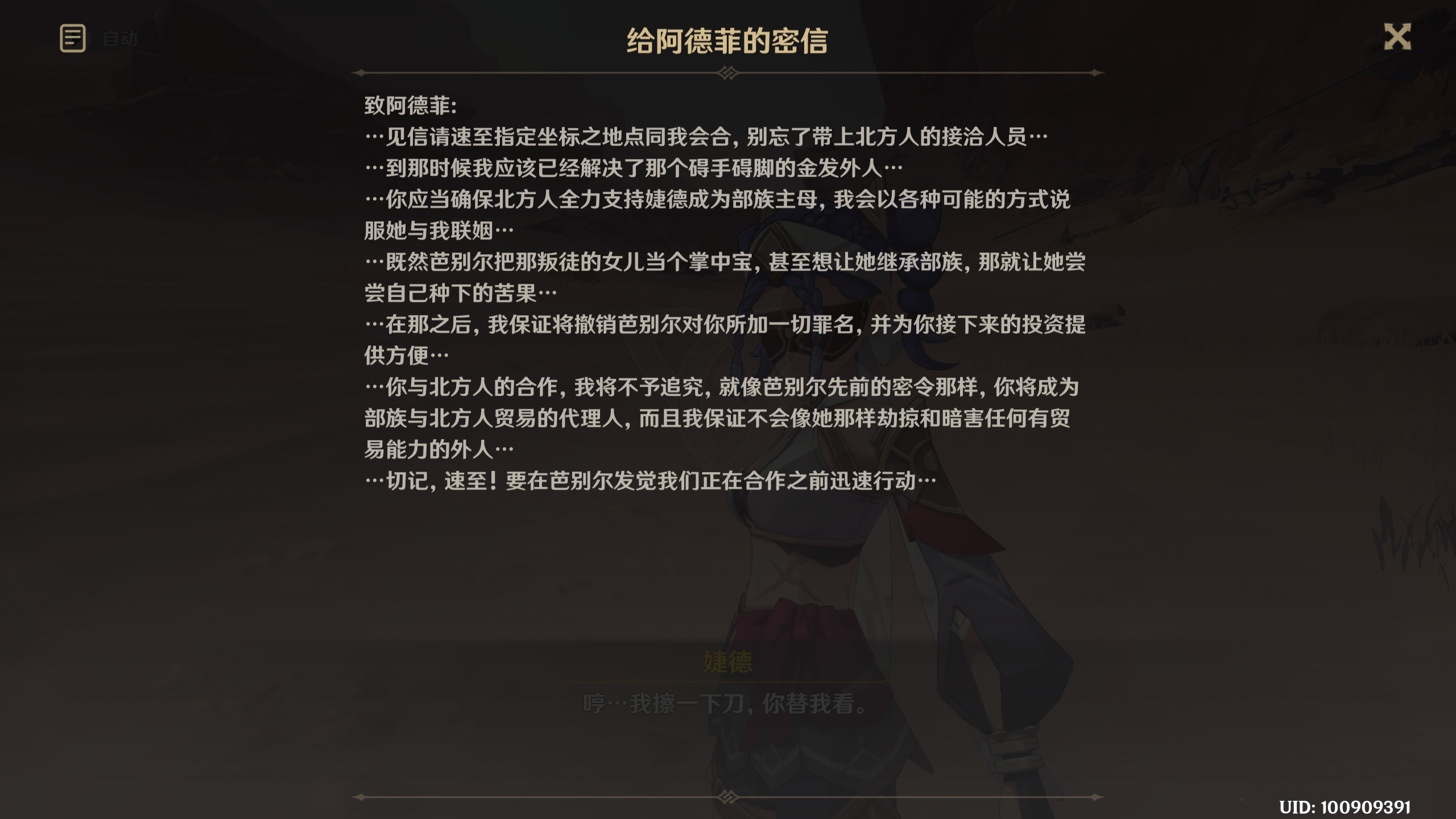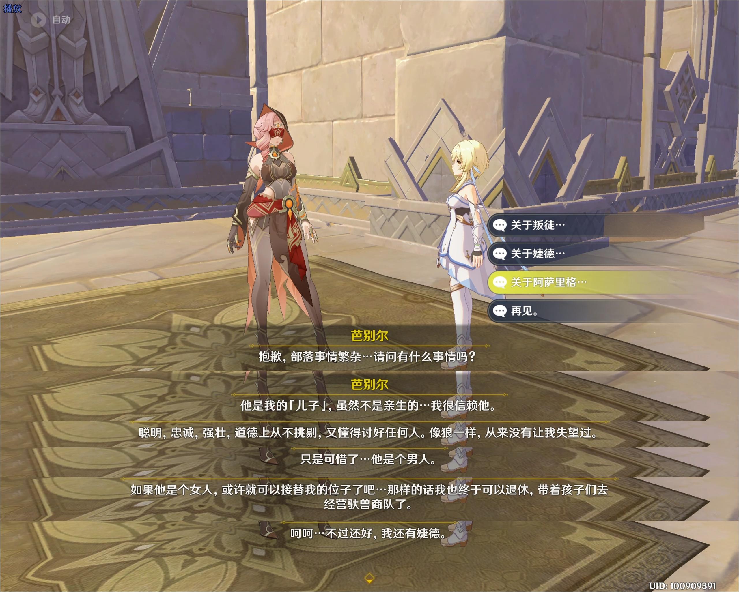 甚至还有这种相当细的文案细节打点——搁第二天这儿,阿萨里格甚至一上来都忘了用敬语hhhh【这也说明原神编剧组写作时是真的几乎把每一个事件流程推进都考虑在内了——哪怕是这种添头事件hhhh】