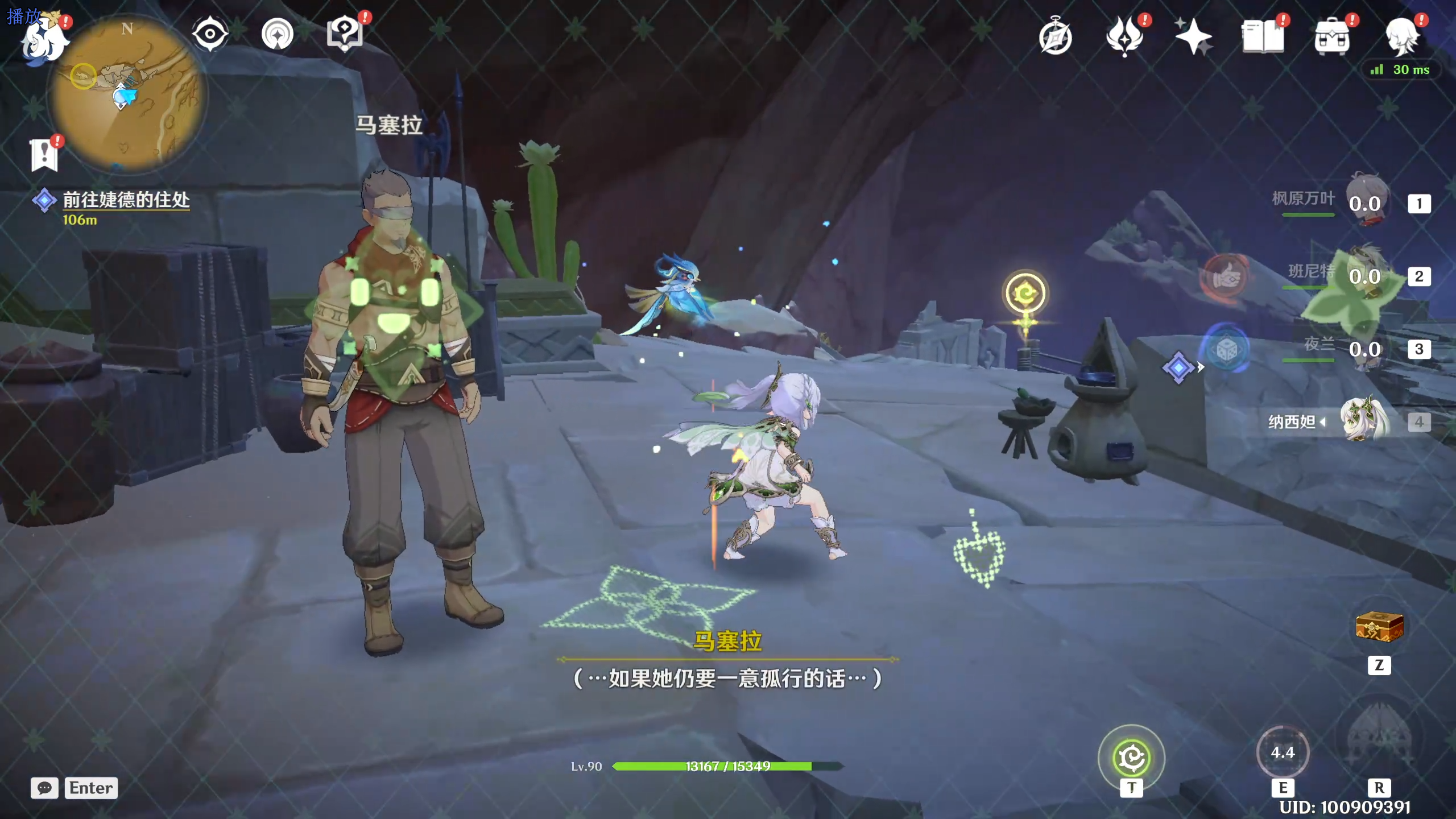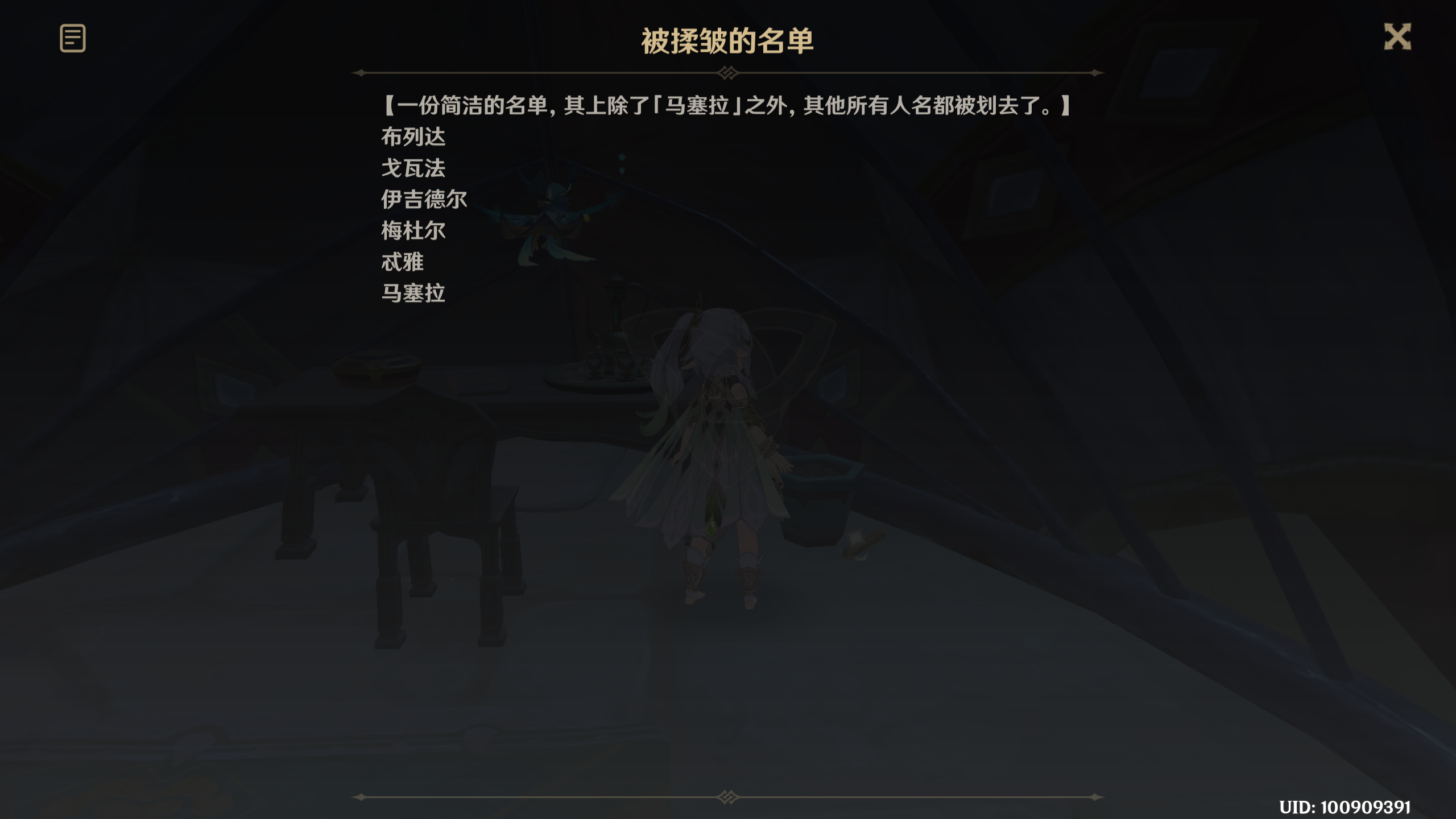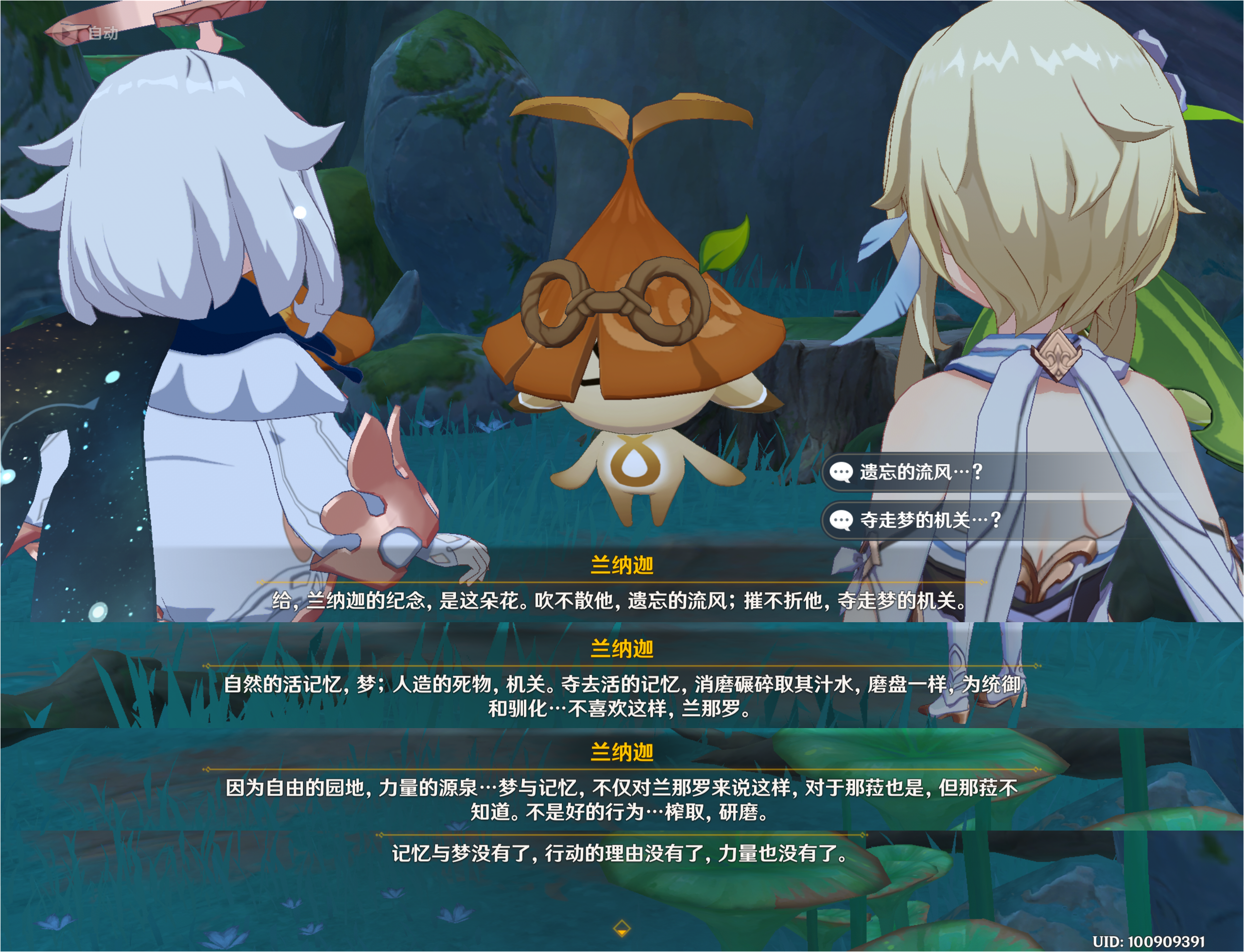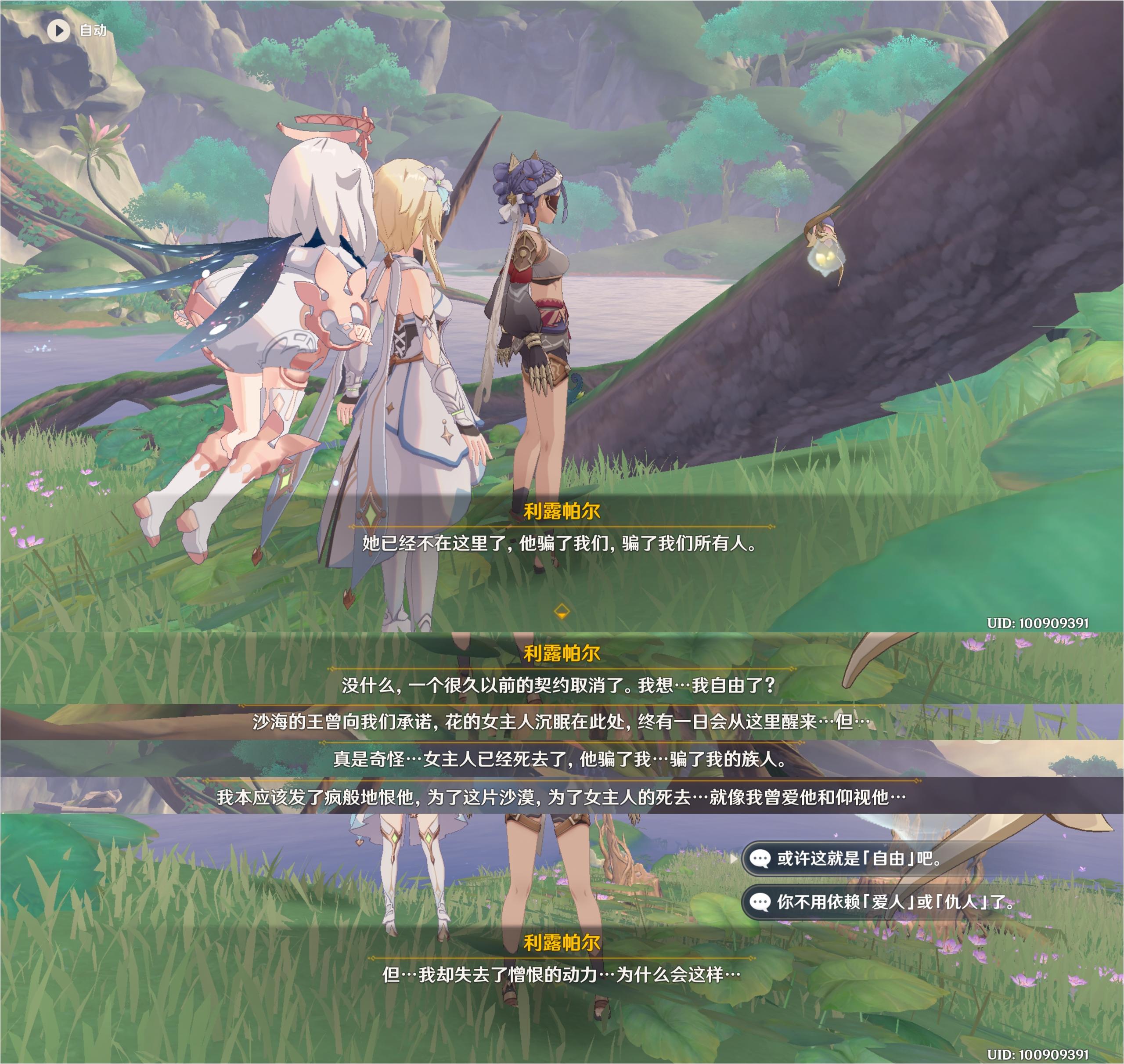 如果你有抽小草神,并且在任务前阶段[8]中有记得做回首……这其实都不能叫回首对话了,应该叫回首内心活动,也就是拿e扫人的话,前面见马塞拉时,会发现拿e扫马塞拉,他所展现的内心活动是这样的——