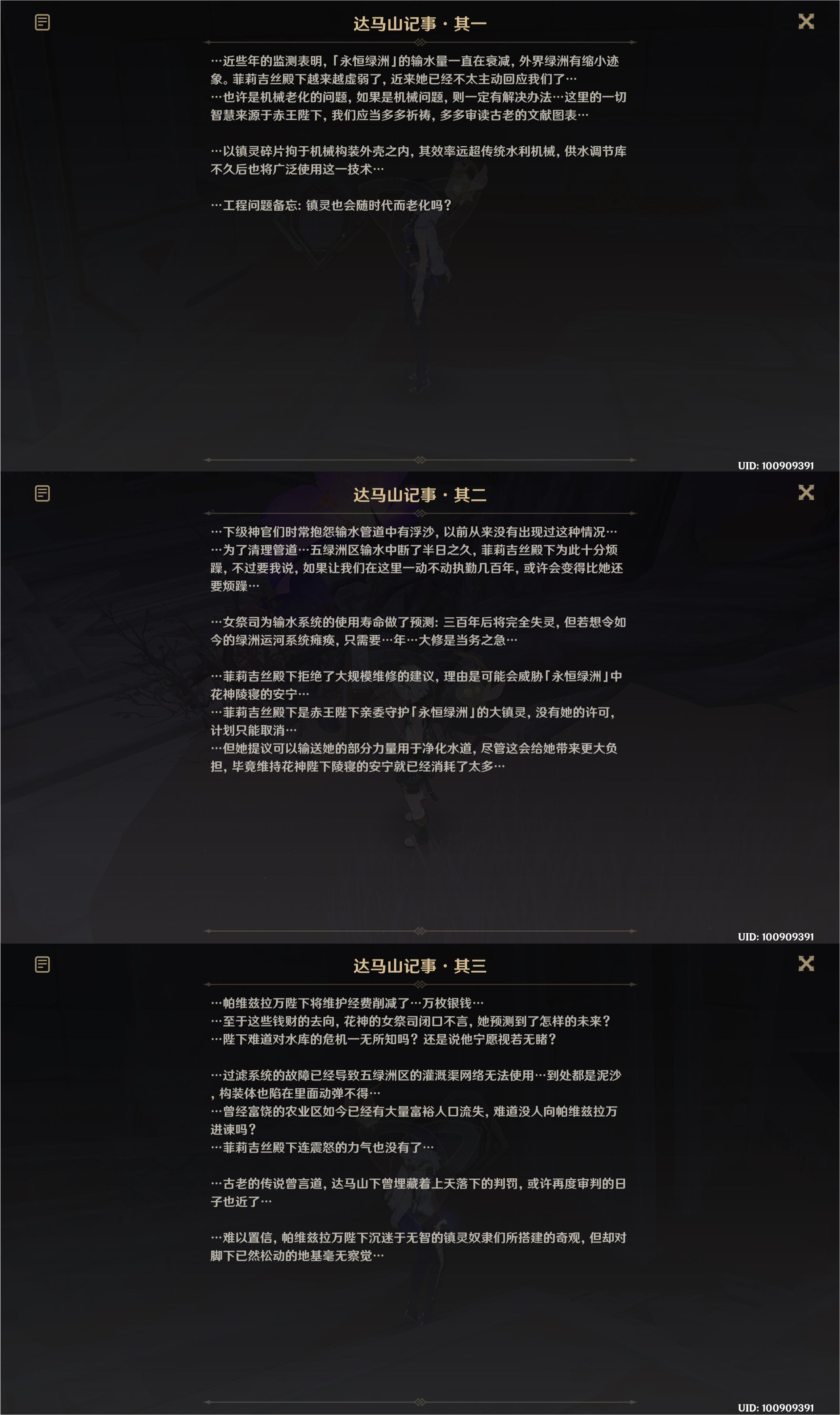 达马山记事,居尔城记事,还有远途勘探者留书。而其它的一些杂项,则视情况讲述部分。