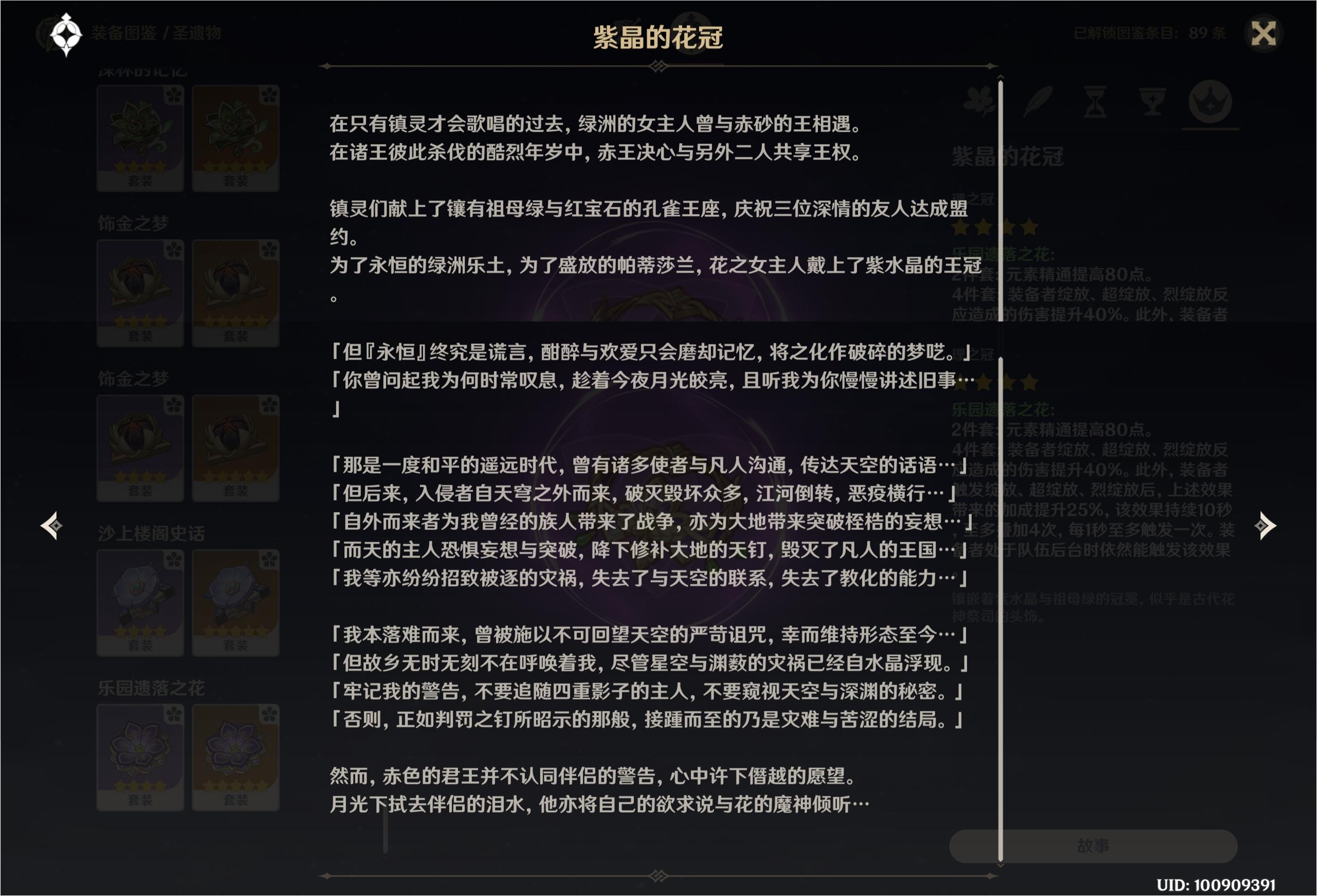 这个圣遗物对应部位也就是塔尼特送的那个纪念品——紫晶的花冠(警觉x2.jpg),其原本的寓意和象征,确实是花神本身的相关元素。三大自称「花神的女儿」、信仰花神的部族以此为信物和纪念的确非常合理没毛病。