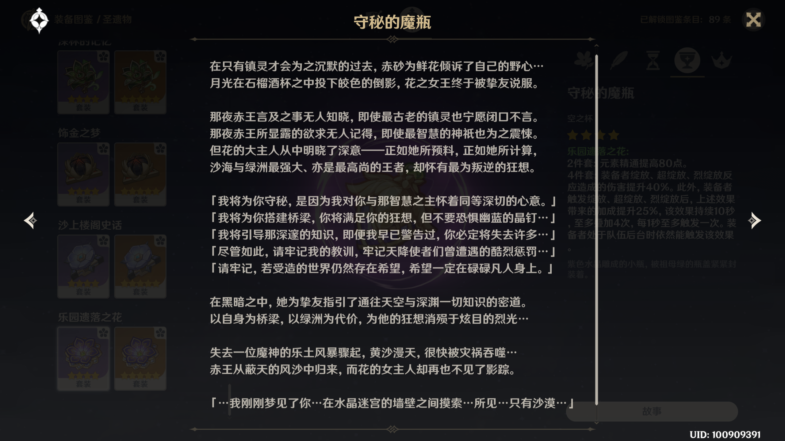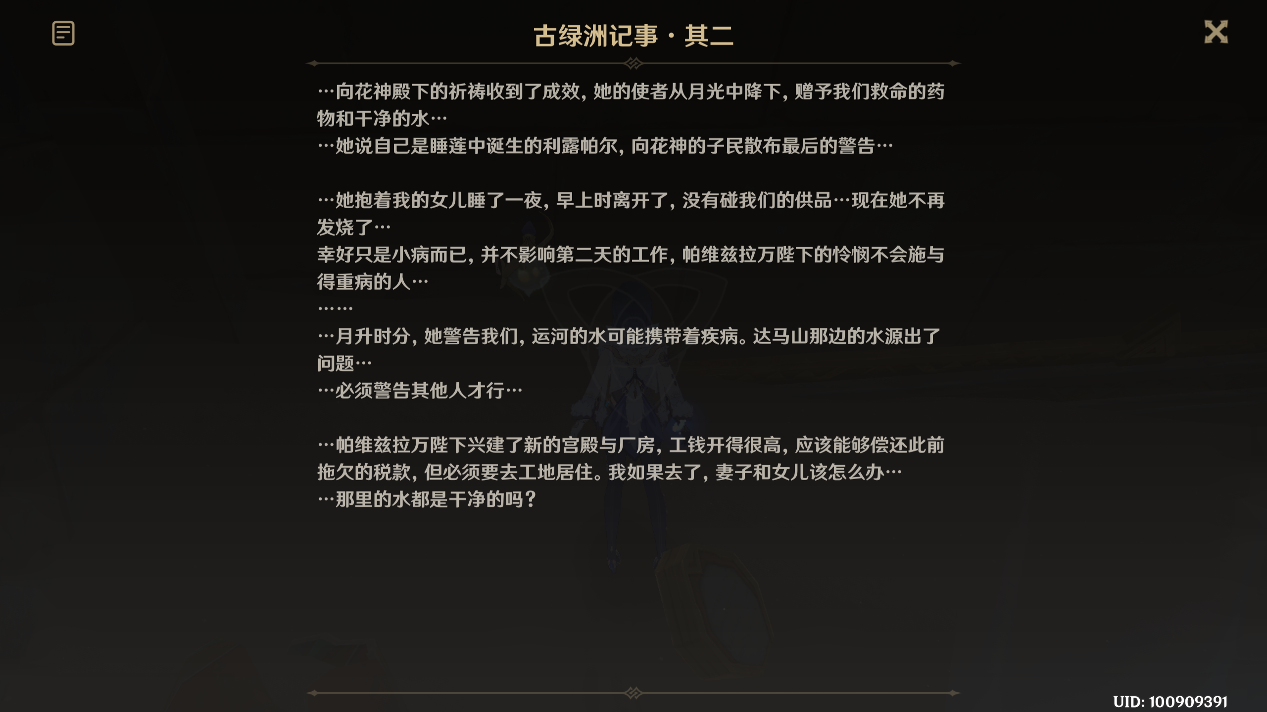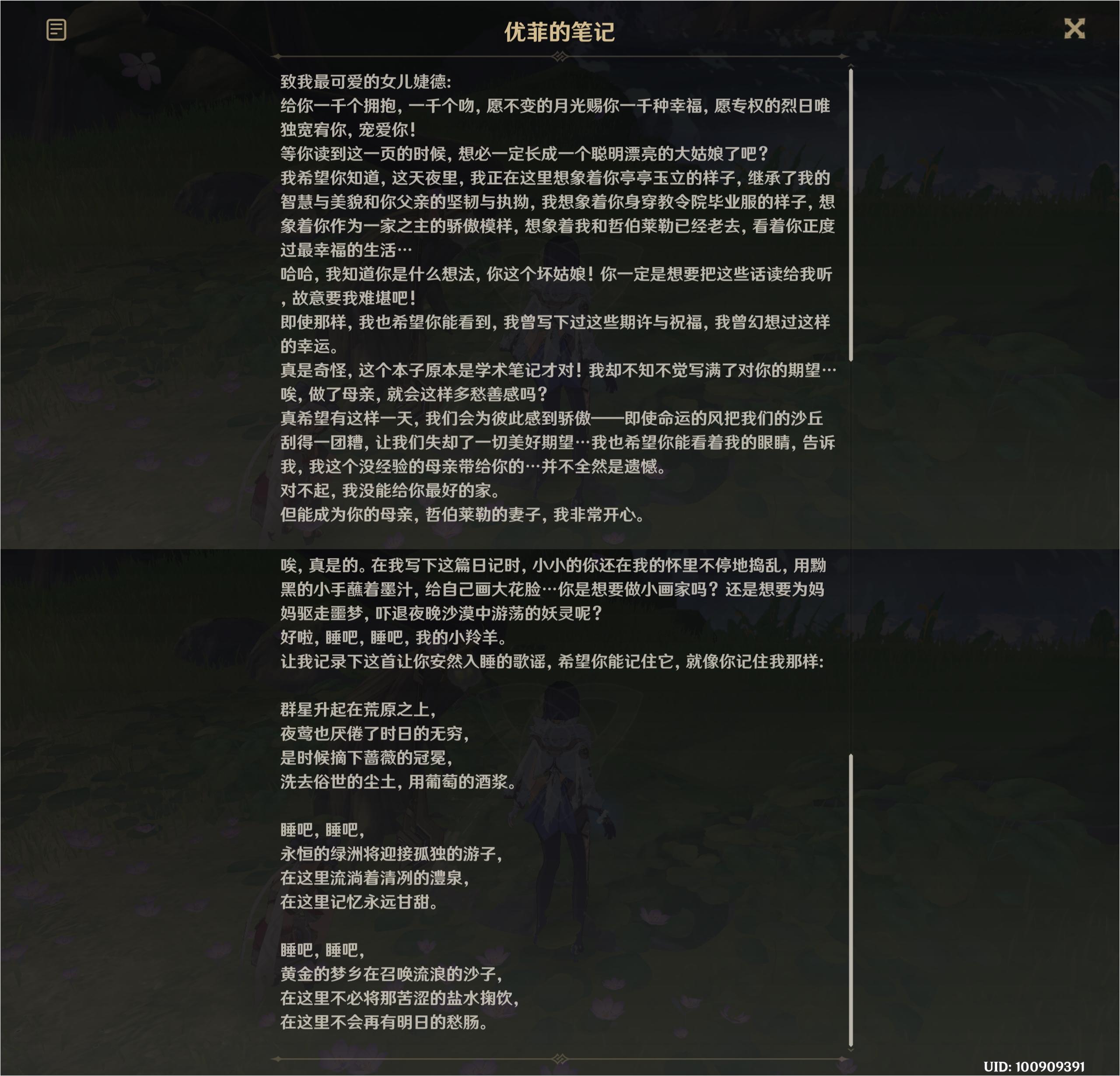 另外,笔者先前的沙漠材料并没收集全,主要是《浮槃歌卷》和《千夜故事集》,所以可能会有相关遗漏(尤其前者好像还挺重要……过两天我直接米游社看看)。