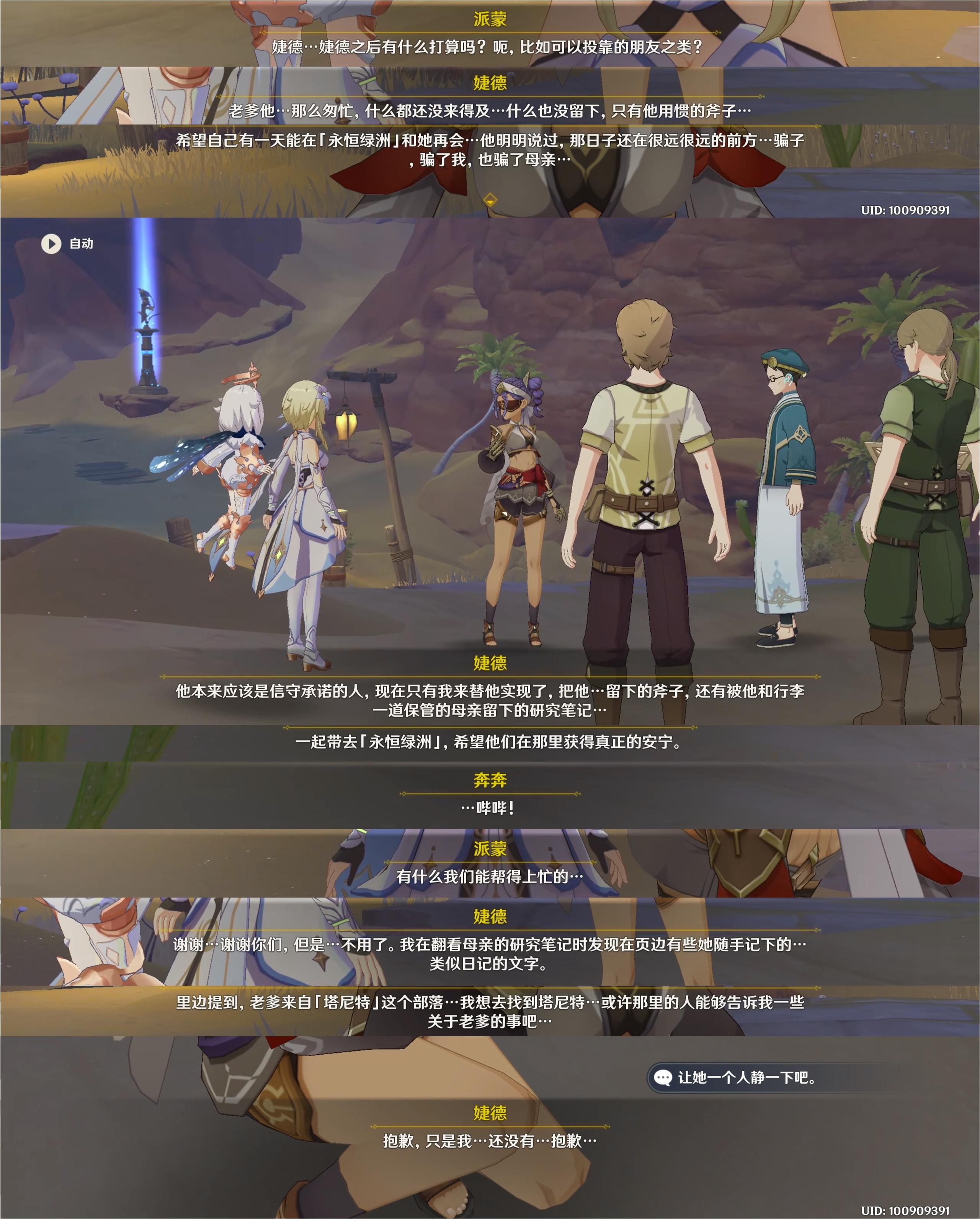这回前台明线的任务故事没太多好说的[3],足够对味儿和优秀,最后婕德将父母的遗物带到永恒绿洲的整体故事意境塑造也相当地不错。