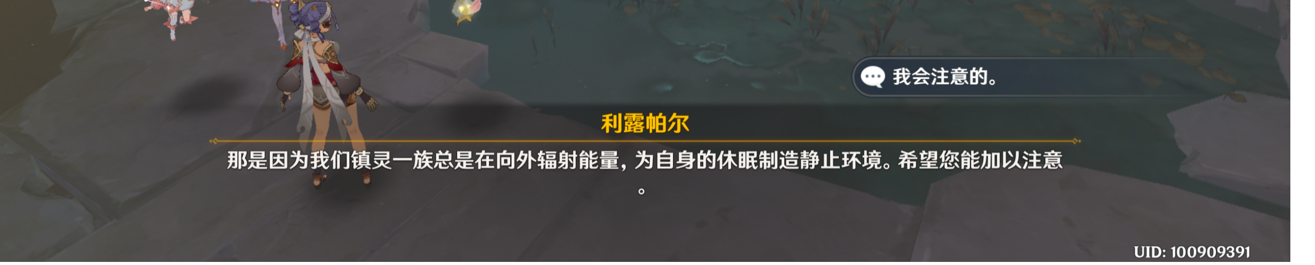 镇灵和人类不是同种族类、差别巨大这事儿是显而易见的,而这回的流程中,一些场景/任务进程触发台词向我们额外点了一两句设定层面上的事儿——镇灵本身的和人类的差别,可能比我们想的还要大些hhhh——