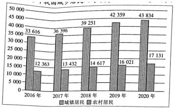 材料一 2016~2020年我国城乡居民人均可支配收入变化情况(单位:元)
