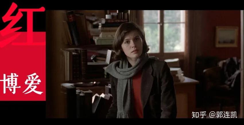 《红》的主题是博爱。女主救治受伤的小狗,帮助街边的老太太,与一个绝望的老法官聊天。