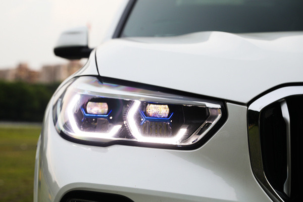 宝马的SUV,现在又不流行“开眼角”了,大灯跟中网是分体的设计。激光大灯是目前在售两款车型的标配,绝大多数情况,激光大灯只是灯组里亮蓝色的装饰。极高的亮度,让这个功能唯有在满足严格外部环境下自动开启,我试驾的一周内,从没遇到过满足开启条件的工况。